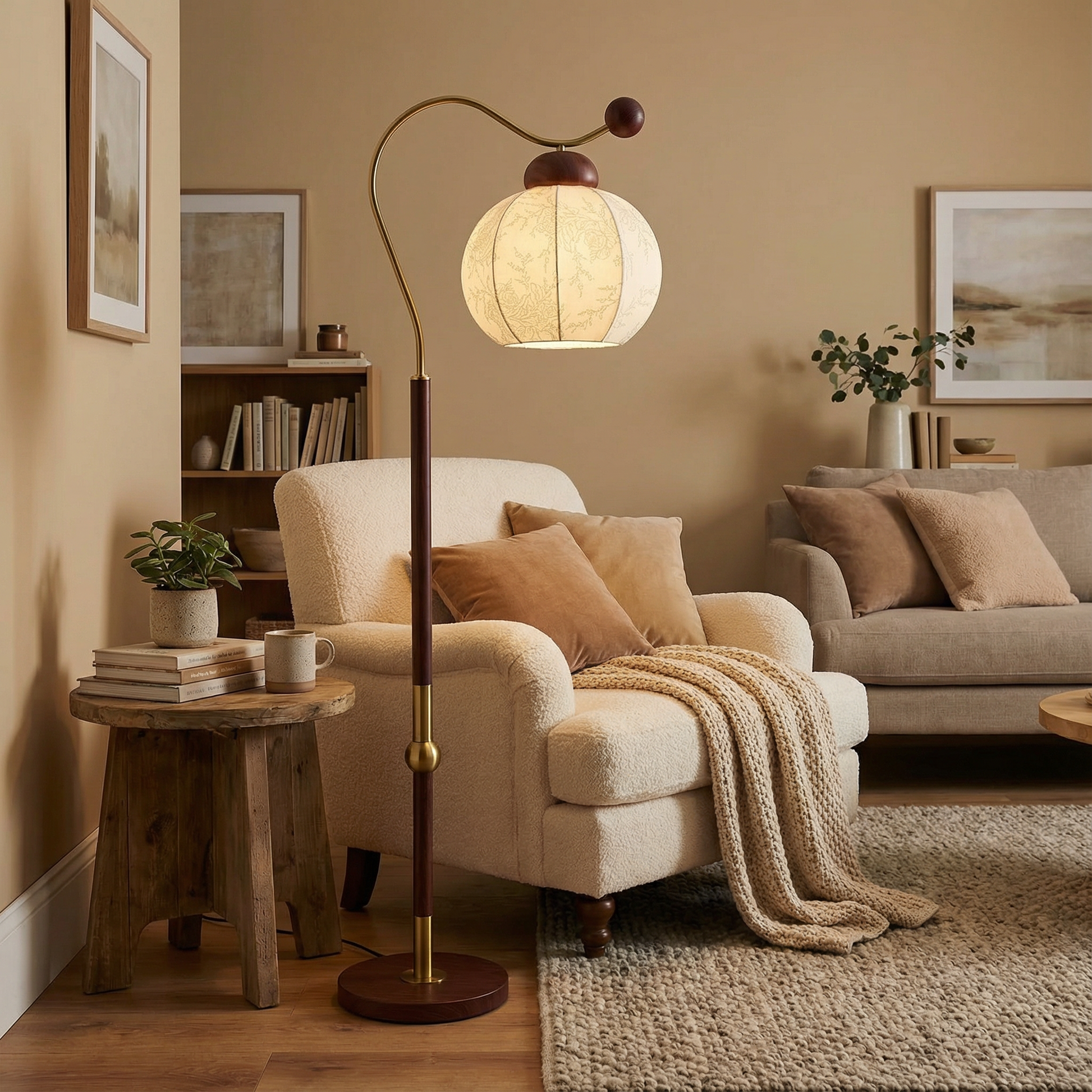 لامب عمودي لطيف جداً مصنوع من المعدن المطلي بالذهب ومغطى بالخشب الصاج